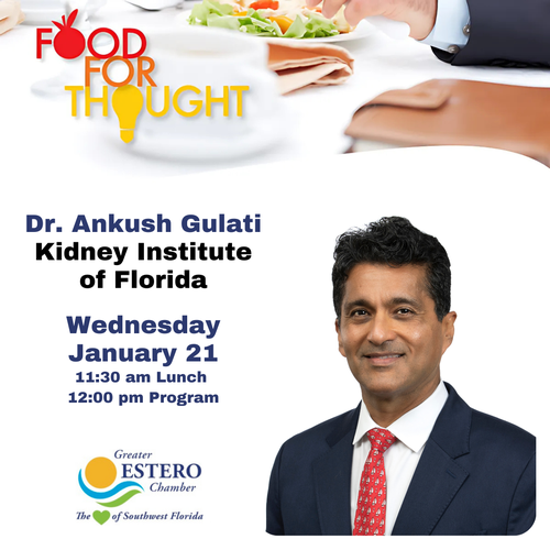 The Greater Estero Chamber of Commerce is proud to host Dr. Ankush Gulati from the Kidney Institute of Florida.